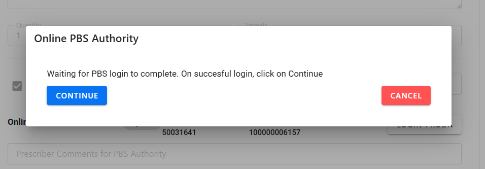 On clicking on the “PRODA Login” button, the system will display a login in progress dialog below.